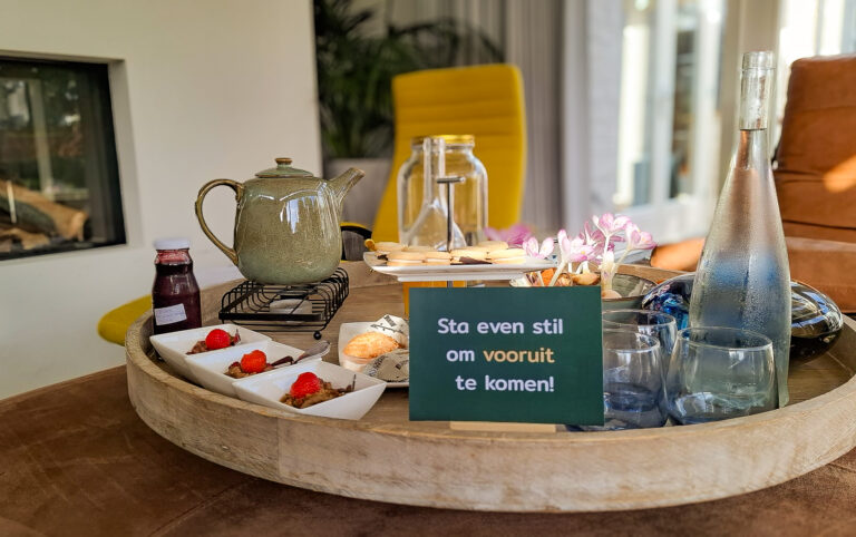 Ondertussen geniet je van een verzorgde high tea en warme gesprekken. - Eén inzicht & één eerste stap